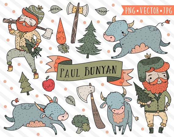 Paul Bunyan Clipart Paul Bunyan Clip Art Folk Lore Clipart Lumberjack Digital Stamps Babe The Blue Ox Clipart Cute Woodland Clipart