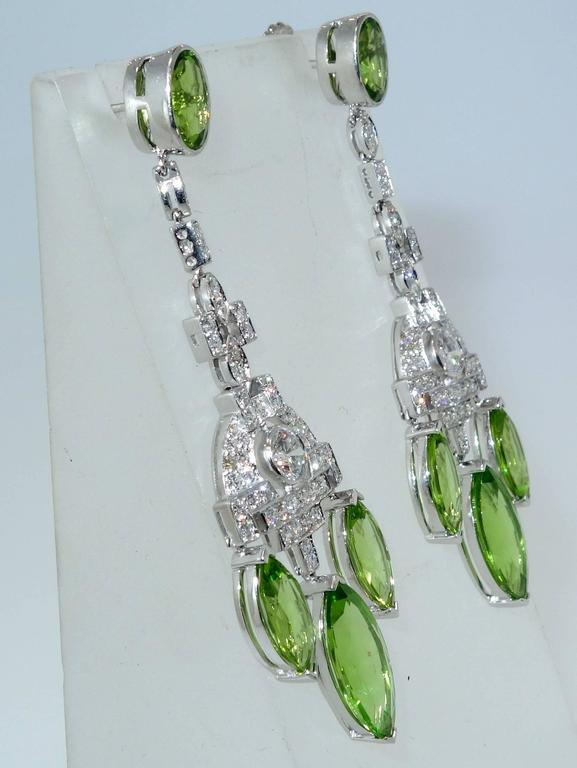 Fine Peridot Diamond Platinum Chandelier Earrings