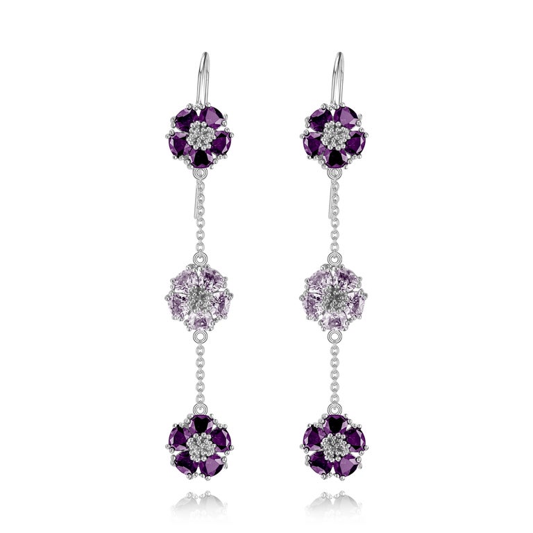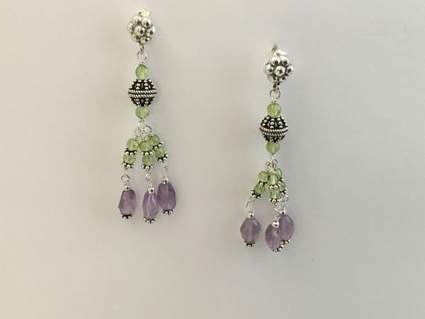 Authentic Amethyst Peridot And 925 Sterling Silver Chandelier Earrings
