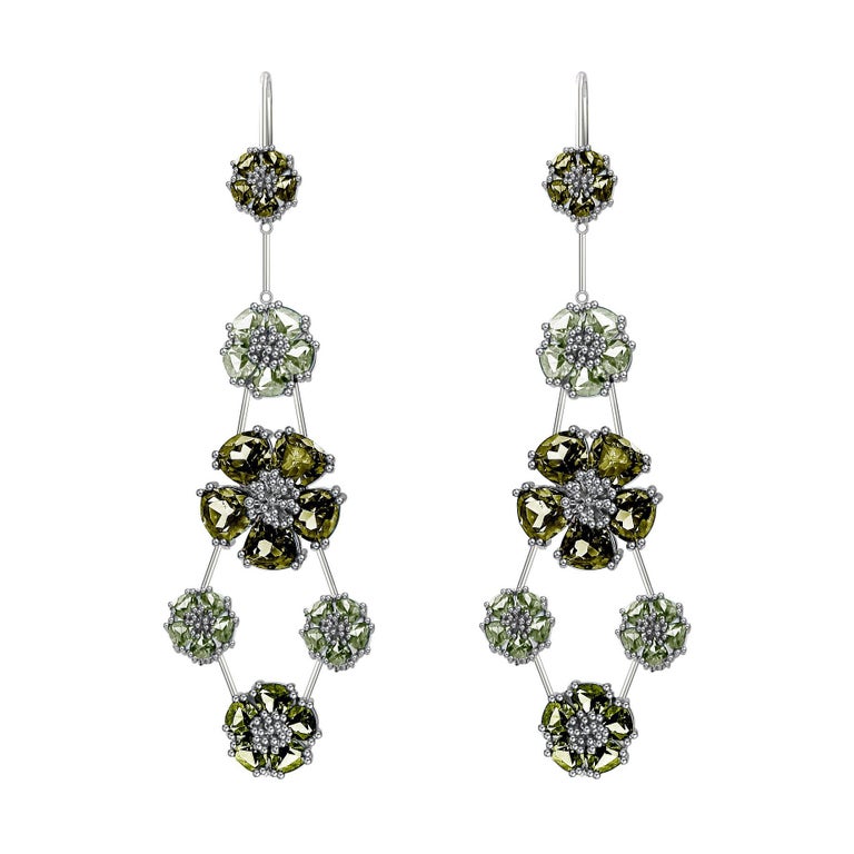 Peridot And Olive Peridot Blossom Gentile Alternating Chandelier Earrings