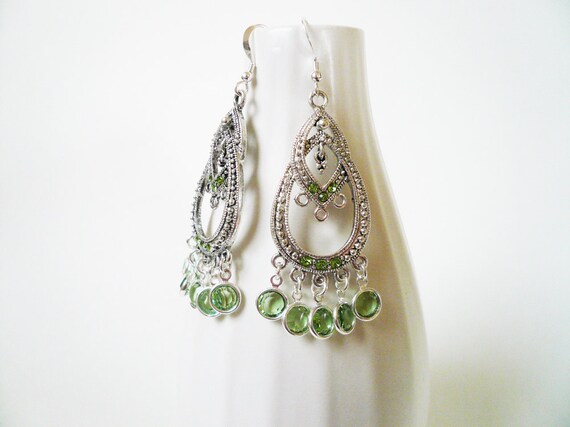 Large Green Peridot Crystal Earrings On Silver Green Pageant Earrings H202 7