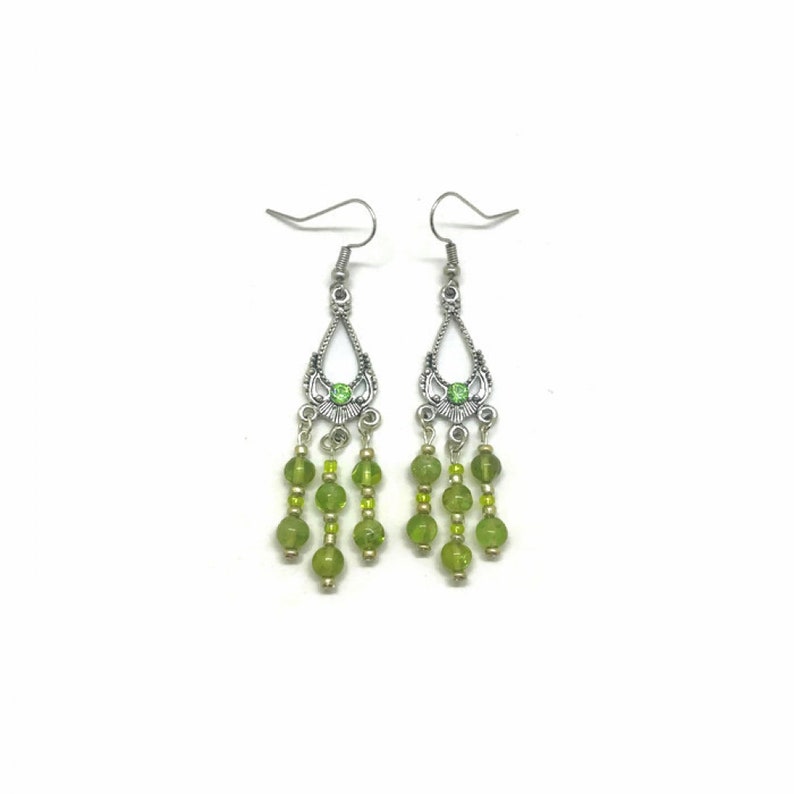 Jasper And Peridot Copper Chandelier Earrings Tinklet Jewelry