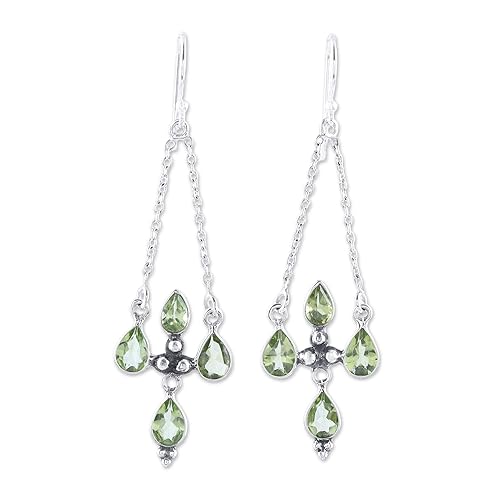 Novica Peridot 925 Sterling Silver Chandelier Earrings Green Flare