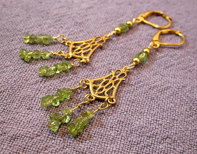 Chandelier Earrings Peridot Art Nouveau Dangle Earrings