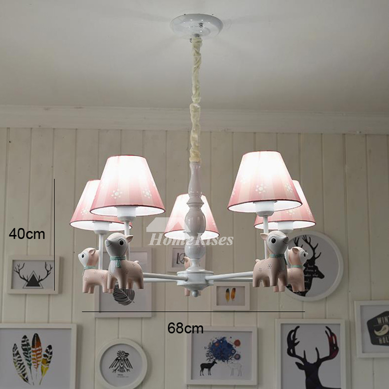 Kids Chandelier Nursery 5 6 Light Wrought Iron Fabric Pink Blue Hanging