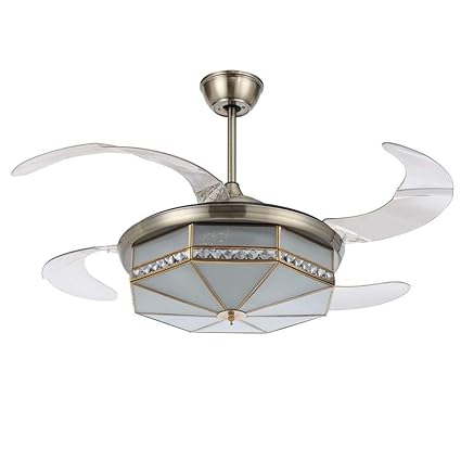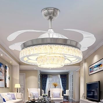 Rs Lighting Crystal Chandelier Ceiling Fan 42 Inch With Retractable 4 Blades And 3 Changing Light Color Invisible Ceiling Fan Light For Indoor