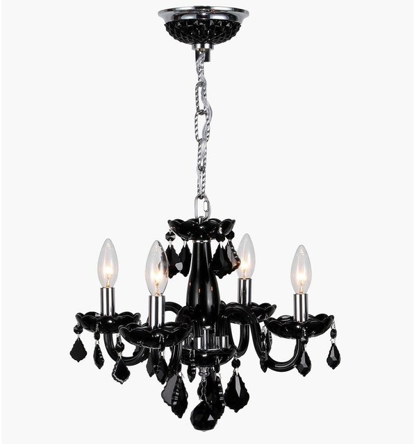 Worldwide Lighting Chandelier Candle Style Black Crystal Polished Chrome 4 Light